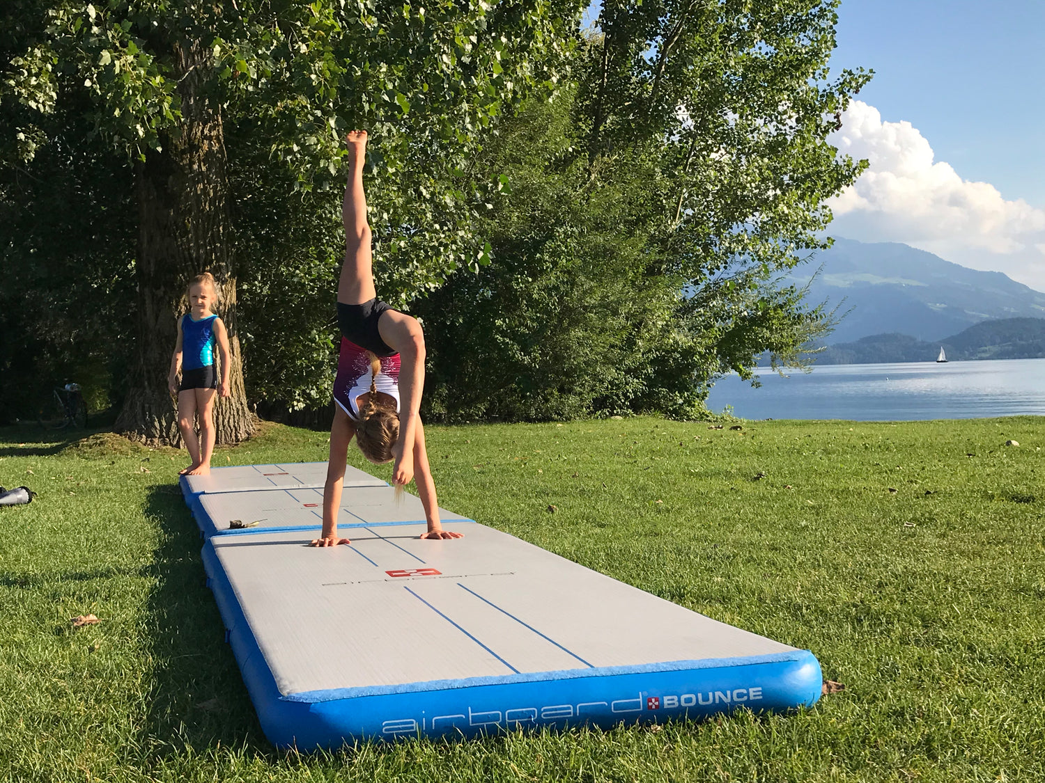 Die AirTrack Matte ist nicht nur ein sicheres Turngerät sondern lässt sich auch sonst sehr vielseitig einsetzen. Z.B. als Badeplattform oder als Schlafmatte