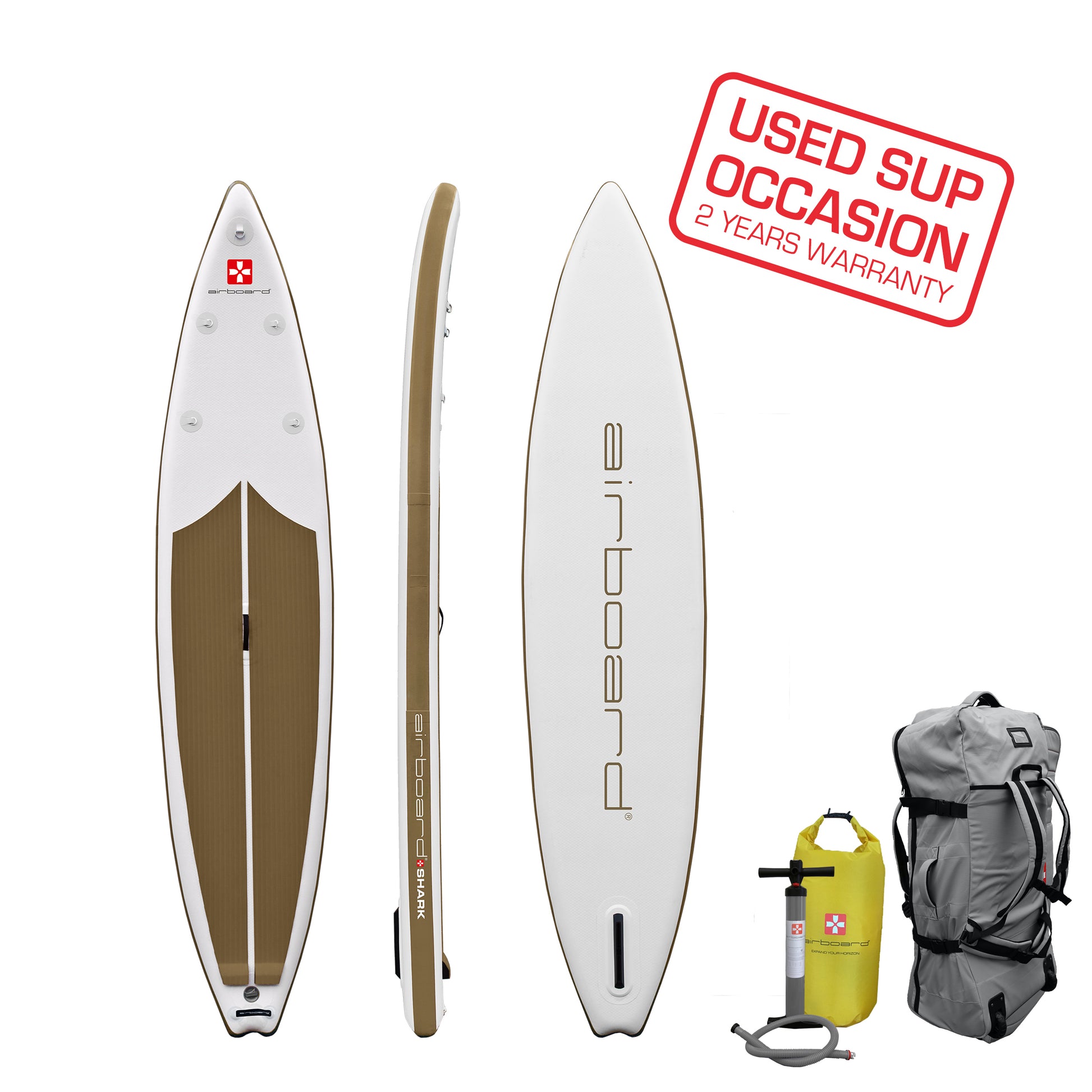 SUP Shark | Wheel-Bag | Leash | High-Pressure Pumpe | US-Box Finne | Manual | Repair Kit