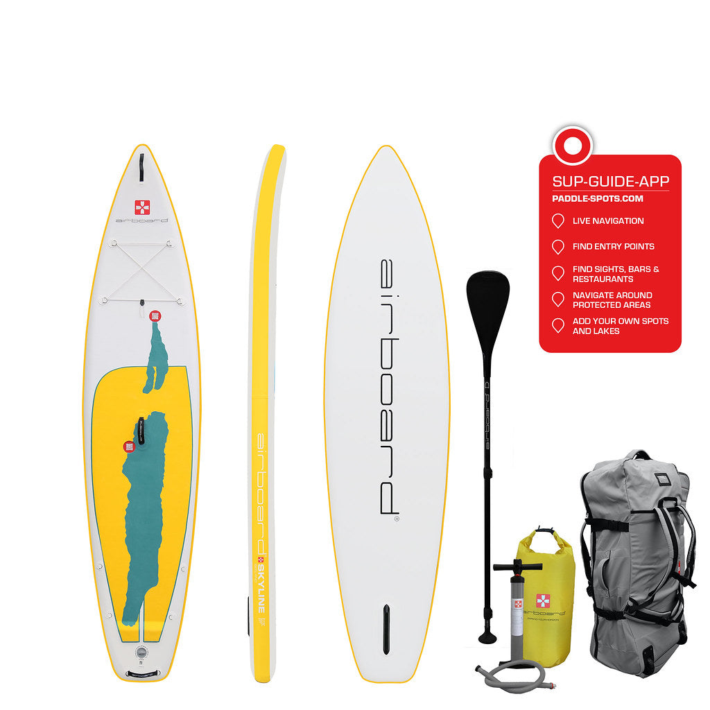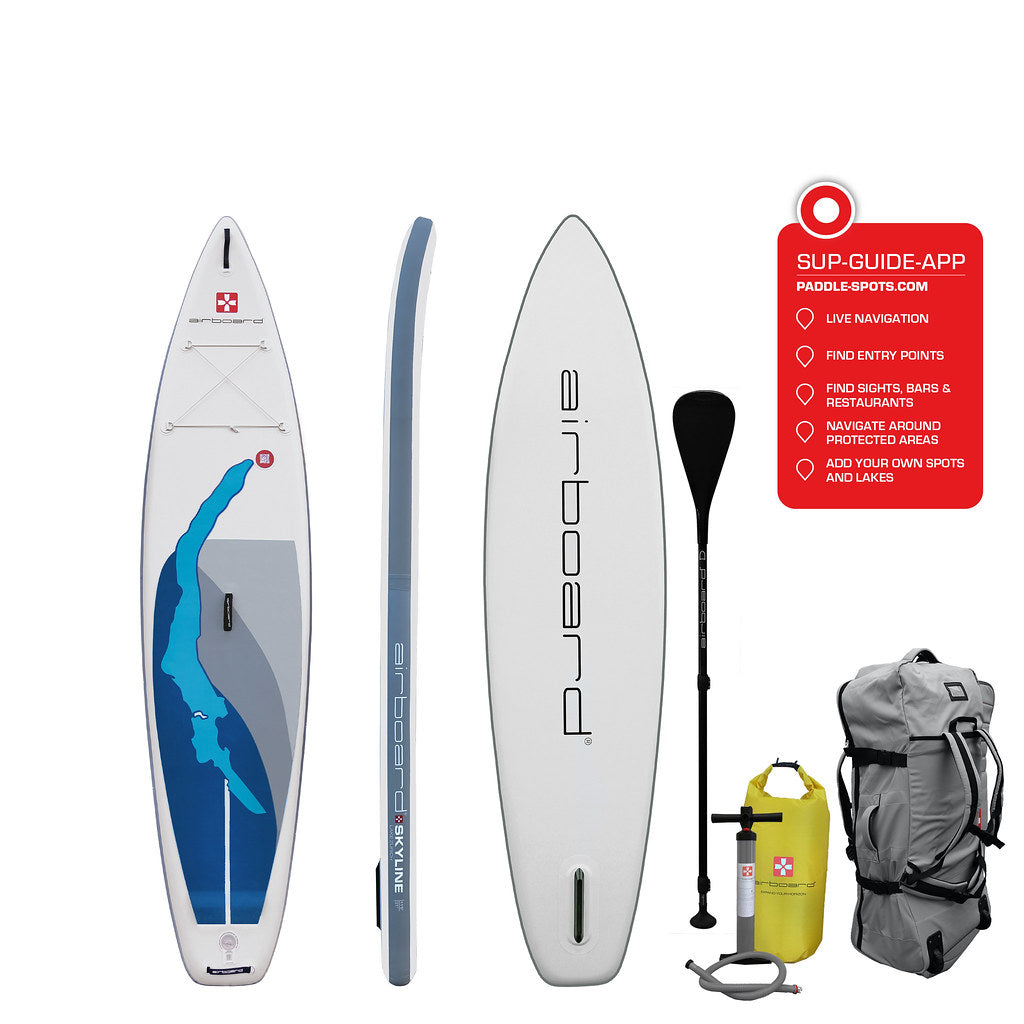 SUP SKYLINE | Fiberglass Paddle | Lightweight Recycling WheelBag | High-Pressure Pumpe | US-Box Finne | Manual | Repair Kit