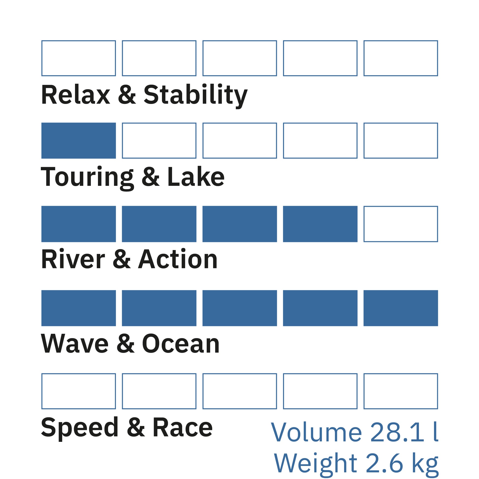 - Das SUP kann auf stillen oder bewegten Gewässern benutzt werden. Lokale Bestimmungen (Uferzone, Sicherheitsbestimmungen) sind unbedingt zu befolgen.