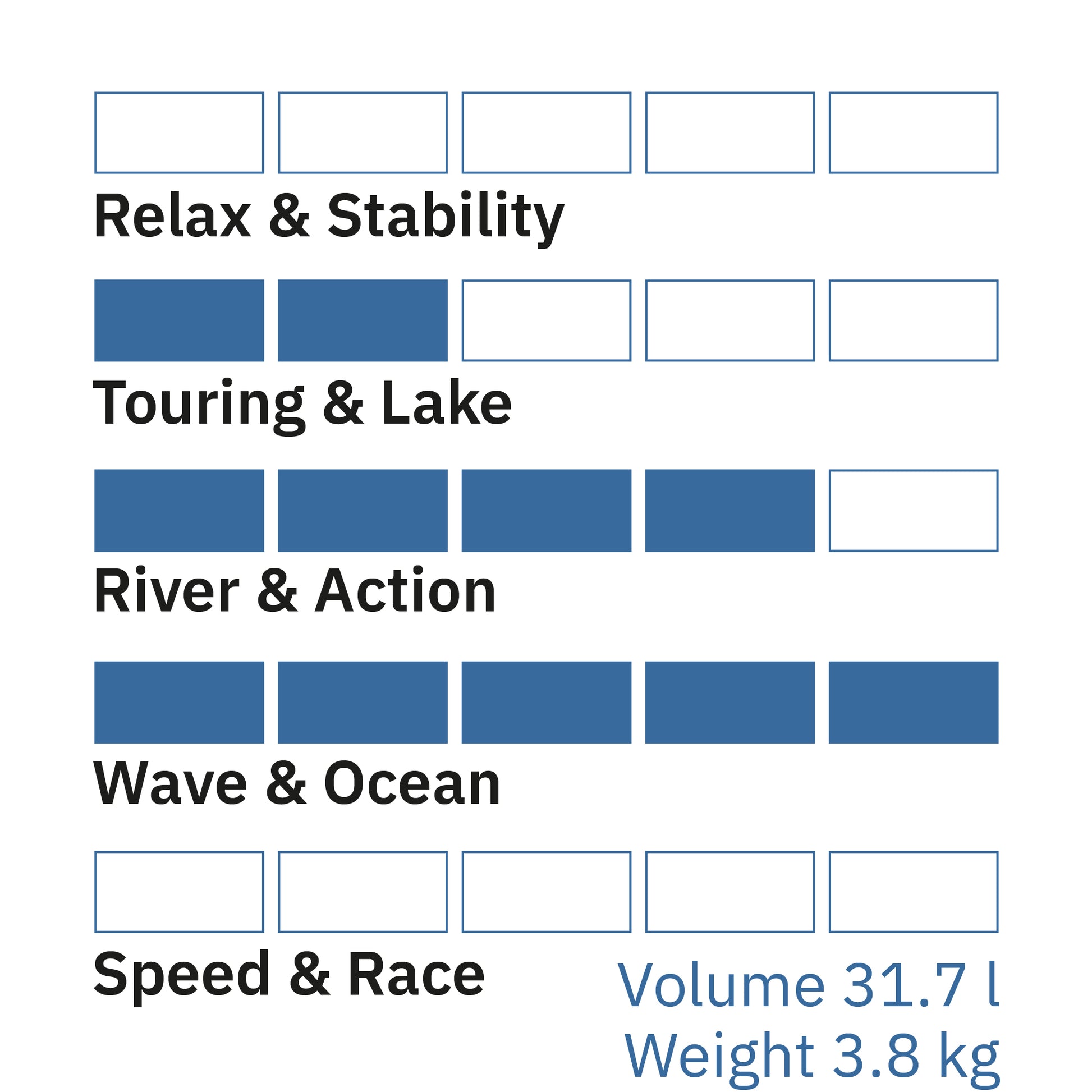 - Das SUP kann auf stillen oder bewegten Gewässern benutzt werden. Lokale Bestimmungen (Uferzone, Sicherheitsbestimmungen) sind unbedingt zu befolgen.